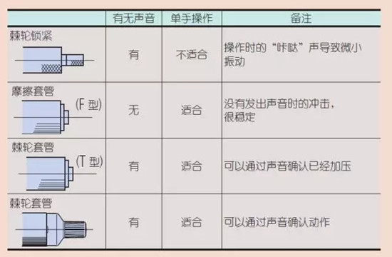 注:該圖表來自三豐千分尺測力裝置簡介。