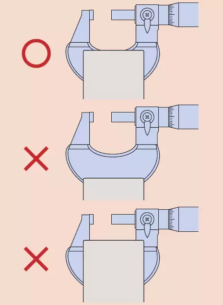 8. 注意千分尺不要摔落或碰撞任何東西。不要過度用力旋轉千分尺測微螺桿。如果感覺意外誤操作導致千分尺可能已損壞,使用前需要進一步檢查其精度。